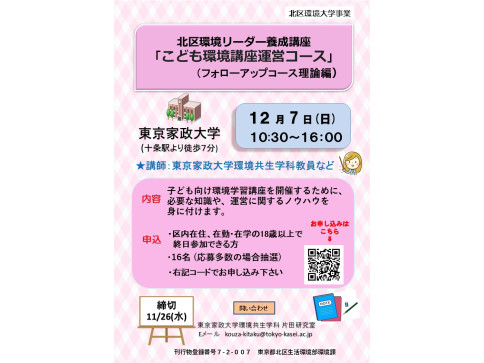 北区環境大学 北区環境リーダー養成講座(フォローアップコース)子ども環境講座運営コース