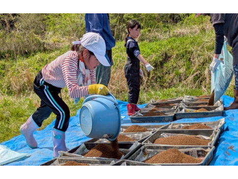 5月の田植えでは、この日に蒔いた種から育った苗を植えます。